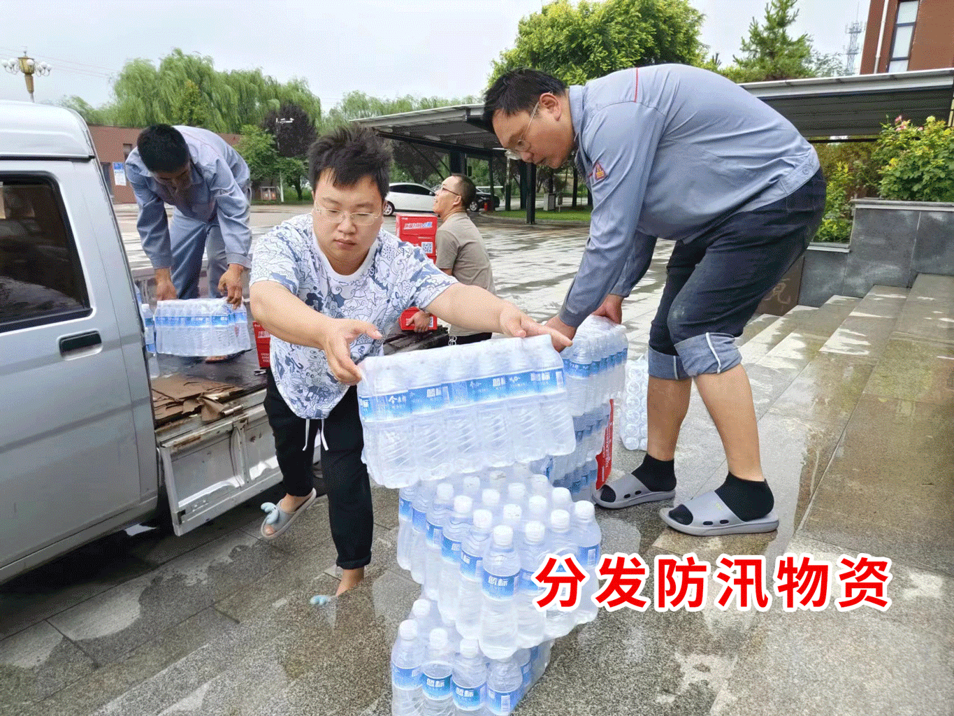 防汛防洪后勤保障队,在多条道路因洪水断交和市场物资紧缺的情况下,通过多方渠道采购,绕路将矿泉水、面包、感冒药等应急食品、应急药品按时送到公司,搬运分发到两厂区,为公司留置抗洪人员解决燃眉之急。
